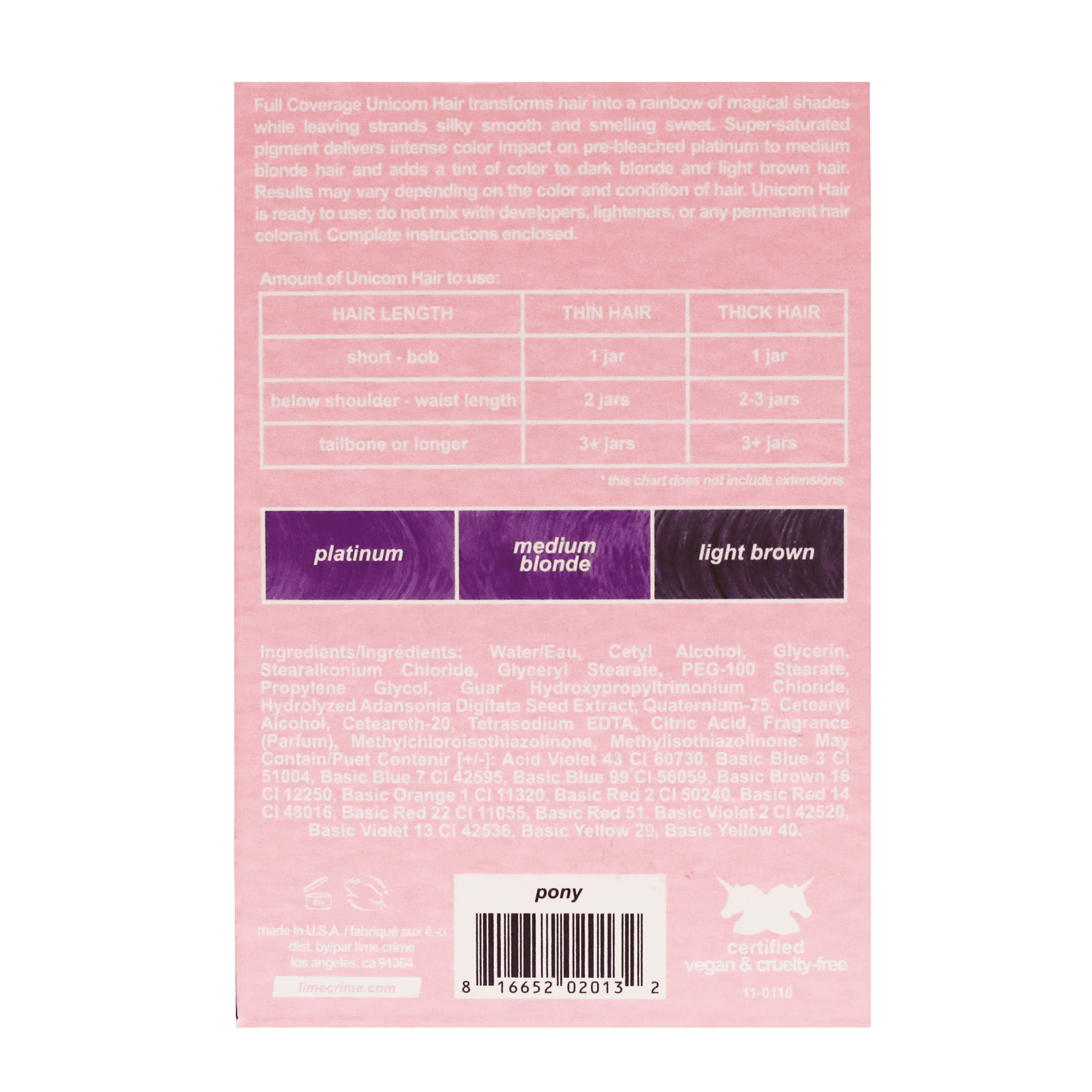 Buy Lime Crime Unicorn Hair Dye Pony Semi Permanent Vegan Full Coverage Hair Color Violet Purple 6 76 Fluid Ounces Online At Lowest Price In Ubuy Philippines 943573109