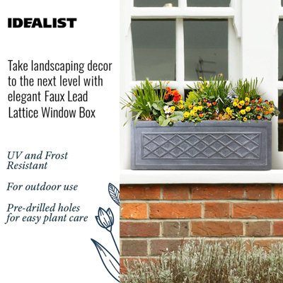 Idealist Window Flower Box Lead Lattice Garden Planter Grey Light Stone Outdoor Plant Pot W17 H17 L50 Cm 14l Diy At B Q